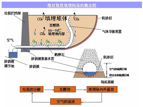 準好(hao)氧衛生填(tian)埋(mai)技術采用不(bu)同理念的填(tian)埋(mai)結(jie)構設計,利用填(tian)埋(mai)堆(dui)(dui)體(ti)(ti)(ti)內(nei)高溫環(huan)(huan)境造成(cheng)(cheng)的內(nei)外溫差(cha),將堆(dui)(dui)體(ti)(ti)(ti)外空氣引(yin)入堆(dui)(dui)體(ti)(ti)(ti)內(nei),并在內(nei)部形成(cheng)(cheng)準好(hao)氧環(huan)(huan)境,并導致填(tian)埋(mai)氣中(zhong)甲烷等可(ke)燃氣體(ti)(ti)(ti)含量大(da)大(da)降低(di),使(shi)其對大(da)氣的污染和(he)溫室化(hua)影響降低(di)30-70%。同時,通過(guo)使(shi)滲瀝液(ye)(ye)經(jing)收集回灌系統循環(huan)(huan)送入堆(dui)(dui)體(ti)(ti)(ti)內(nei),將高濃度滲瀝液(ye)(ye)分(fen)解更加徹底(di), COD濃度和(he)水處(chu)(chu)理成(cheng)(cheng)本(ben)進一步降低(di),經(jing)常(chang)規生物處(chu)(chu)理即(ji)可(ke)達(da)標排(pai)放;
