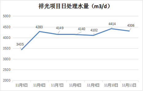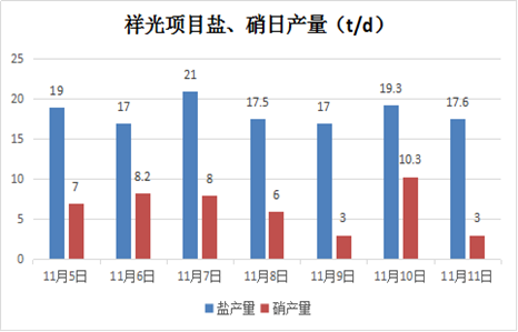 11月5日-11月11日運行期間,平均日水處理量4118m3/d,優于設計值4000m3/d,每日鹽硝產量均能達到設計值。